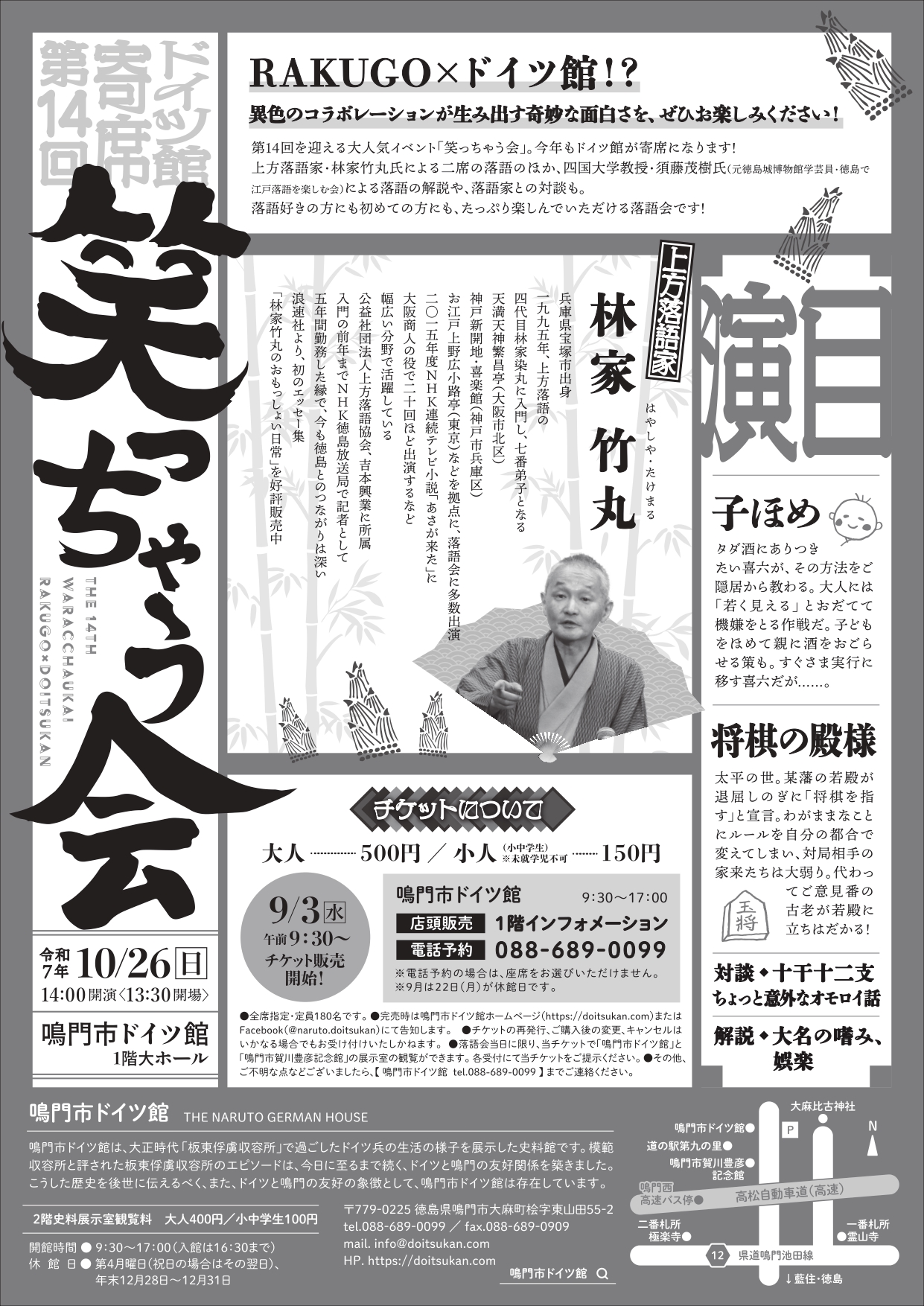 ●落語会当日に限り、本チケットで「鳴門市ドイツ館」と「鳴門市